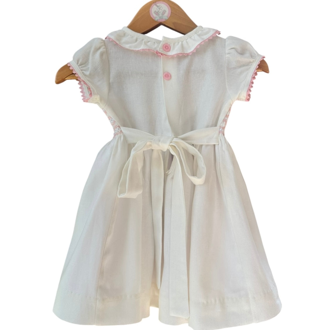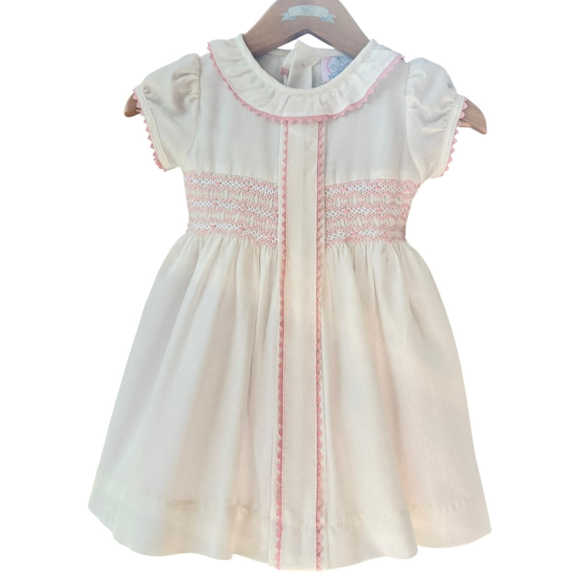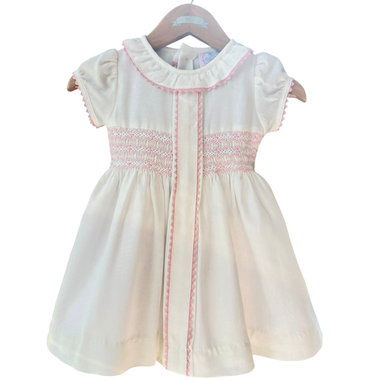 El Vestido Mila es una prenda elaborada en lino blanco, diseñada específicamente para niñas. Su bordado a mano en tono rosa y detalles en espiguilla rosa aportan un toque estético. La manga corta de globo permite mayor comodidad y frescura, mientras que las bandas ajustables en la espalda garantizan un calce adecuado. Además, su forro de popelina mejora la transpirabilidad y suavidad en contacto con la piel.
