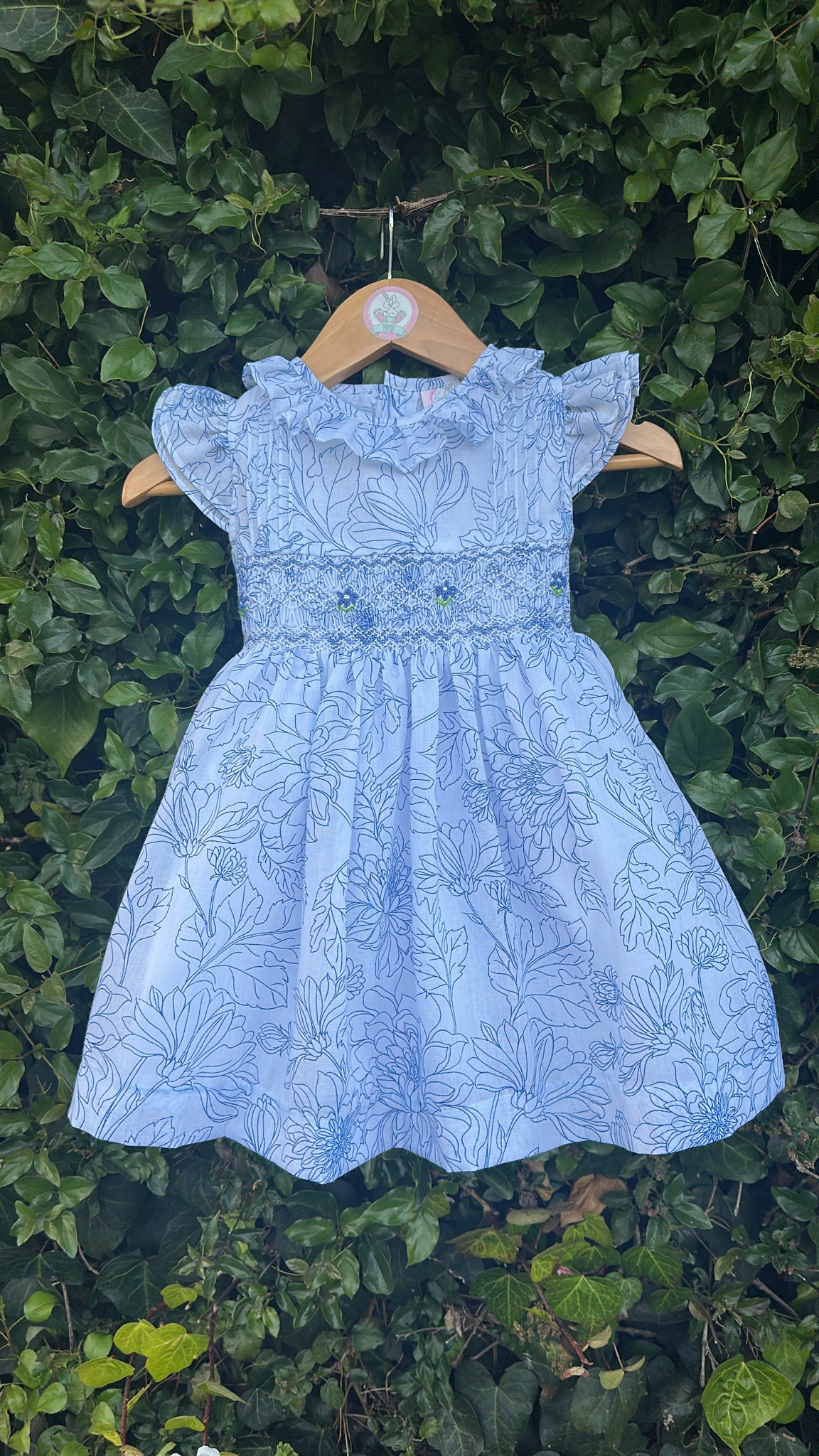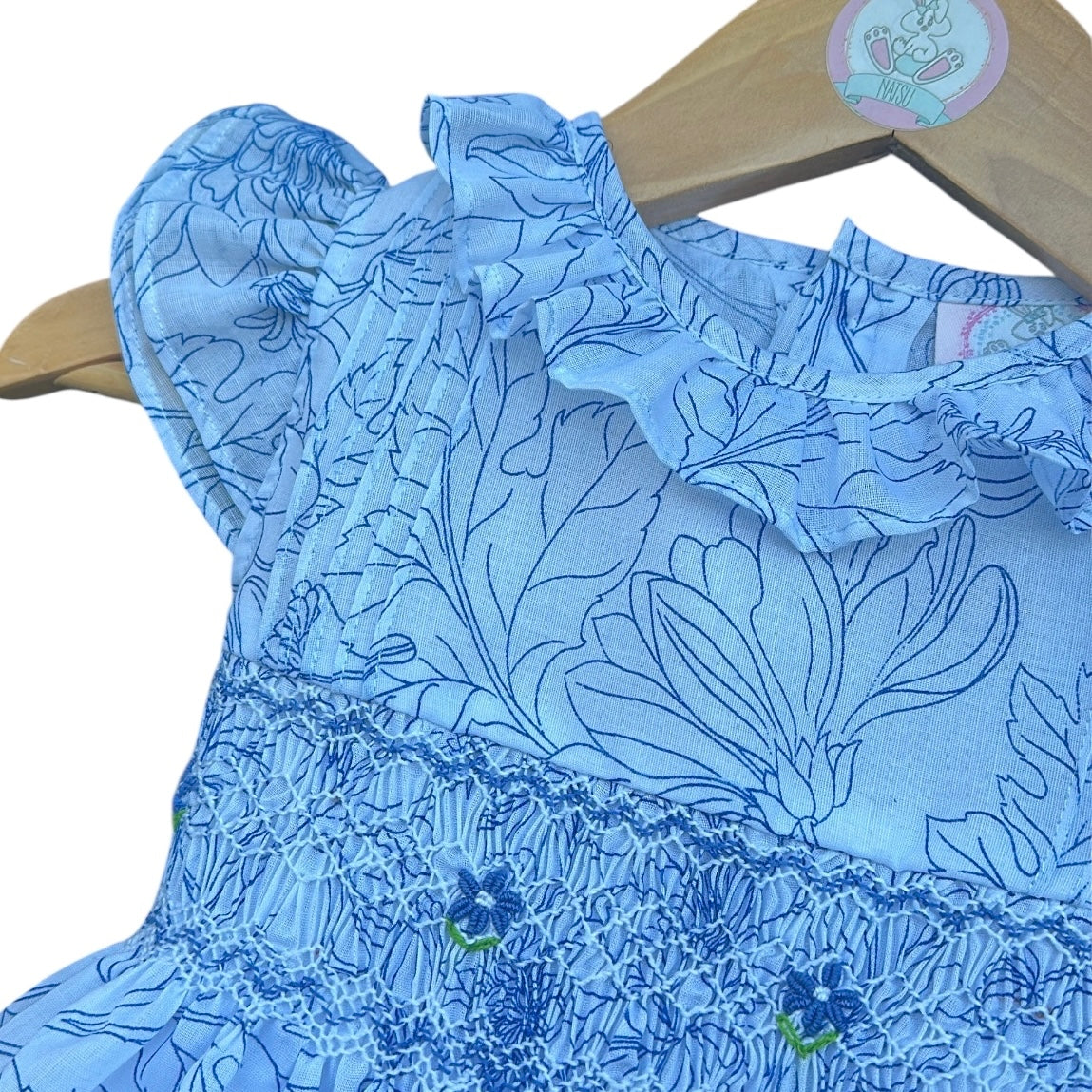 El vestido para niña Marisol está confeccionado en voile de algodón, ofreciendo una textura suave y transpirable. Su bordado a mano añade un toque artesanal, mientras que las bandas en la espalda permiten un ajuste personalizado. El forro de popelina proporciona comodidad y estructura, ideal para ocasiones especiales.